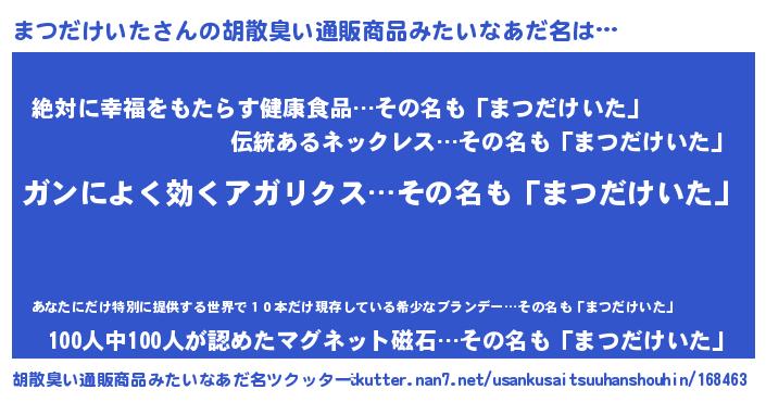 | 意味不明あだ名 | 『自称まつだけいた』 |
