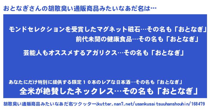 | 男性向けラノベタイトル風あだ名 | 『Re:おとなぎから始める異世界生活』 |