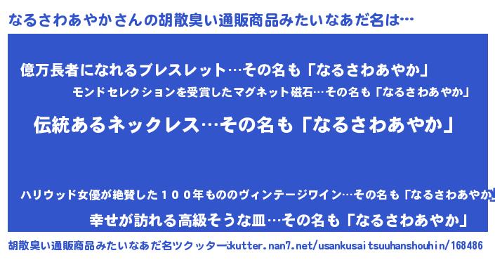 | ポケモン風あだ名 | 『ヒナルサワアヤカ』『ナルゴンZ』 |