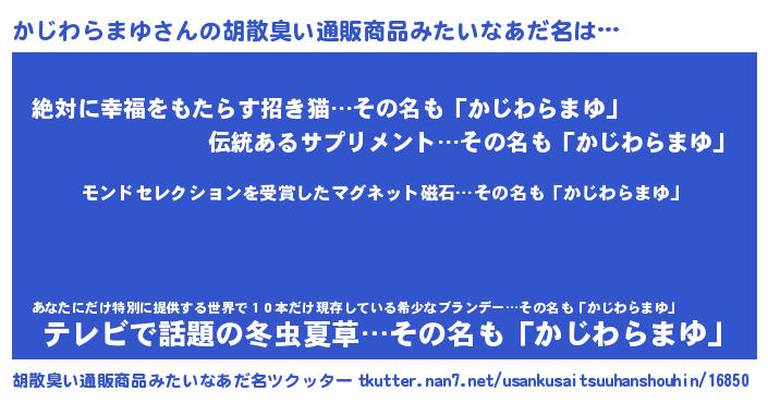 | 伝説のあだ名 | 『救世主となる技術者かじわらまゆ』 |