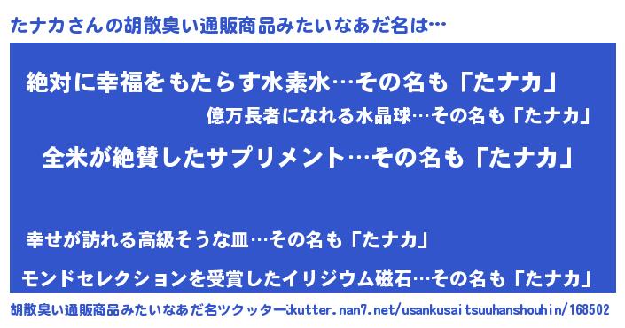 | 意味不明あだ名 | 『とにかく怪しいたナカ』 |