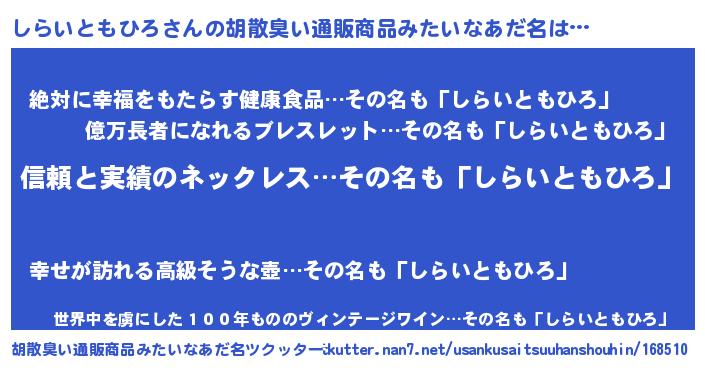 | 意味不明あだ名 | 『とにかく怪しいしらいともひろ』 |