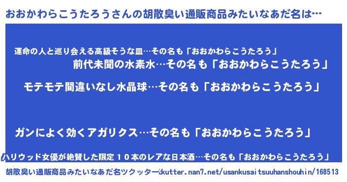 | ヒーロー風カッコイイあだ名 | 『スーパーオオカワラコウタロウ』 |