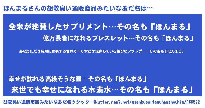 | ヘコむあだ名 | 『ほんっちょ』『ほんまる(震え声)』 |