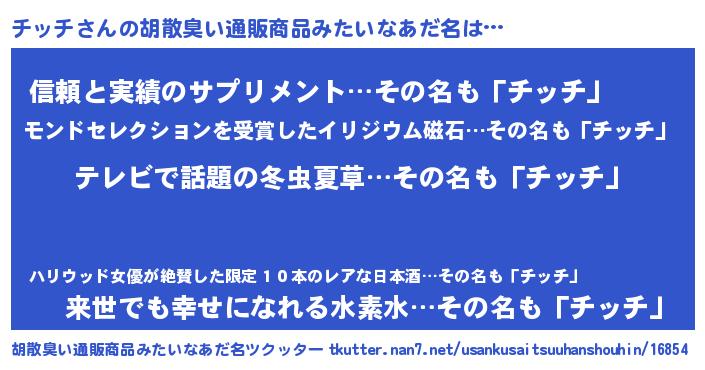 | ヒーロー風カッコイイあだ名 | 『最強戦士チッチ』『黄金騎士チッ』 |