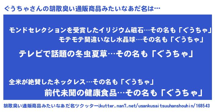 | 意味不明あだ名 | 『自称ぐうちゃ』『永久保存ぐうちゃ』 |