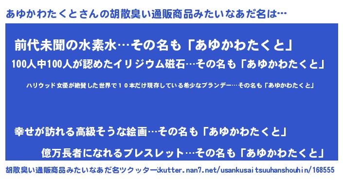 | 意味不明あだ名 | 『住所不定無職あゆかわたくと(95歳)』 |