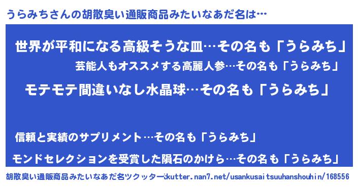 | ヒーロー風カッコイイあだ名 | 『スーパーウラミチ』『究極戦士ウラミチ』 |