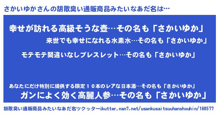 | 女子向けラノベタイトル風あだ名 | 『さかいゆかの玉の輿計画!』 |