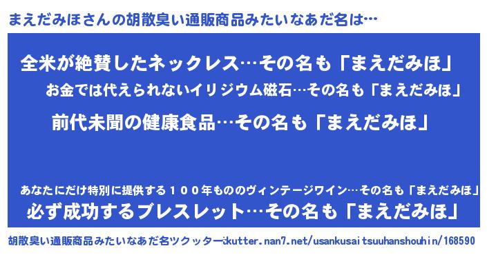 | ヘコむあだ名 | 『まえだみほ(笑)』『まえっ子』 |