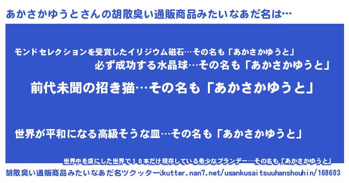 | 意味不明あだ名 | 『永久保存あかさかゆうと』 |