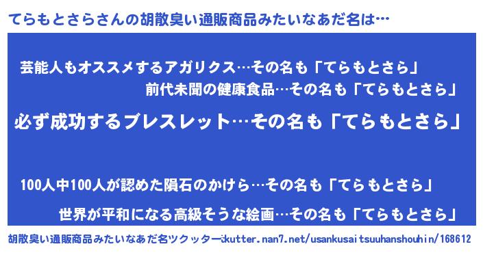 | 意味不明あだ名 | 『ペロリンてらもとさら』 |
