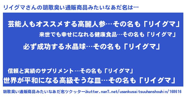 | 意味不明あだ名 | 『ペロリンリイグマ』『自称リイグマ』 |