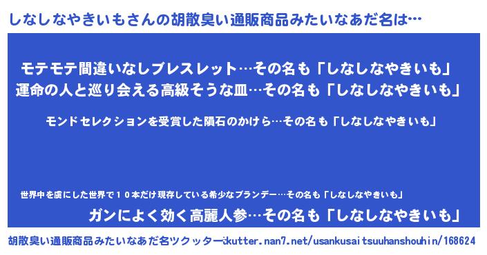 | ヒーロー風カッコイイあだ名 | 『天空の使者しなしなやきいも』 |