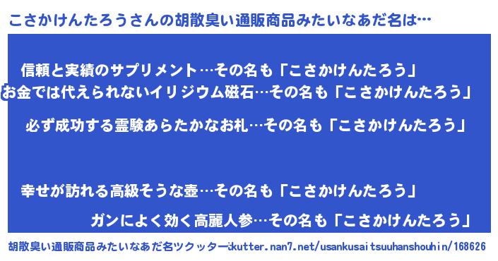 | 伝説のあだ名 | 『伝説のスナイパーこさかけんたろう』 |