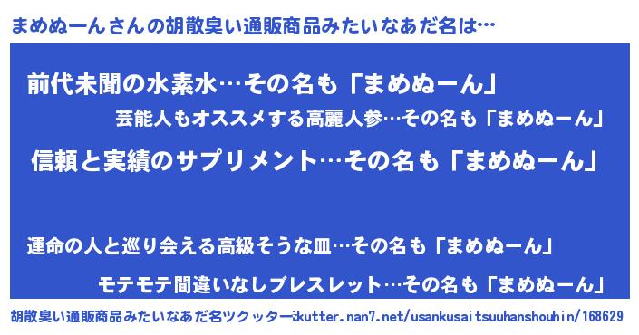 | 意味不明あだ名 | 『とにかく怪しいまめぬーん』 |