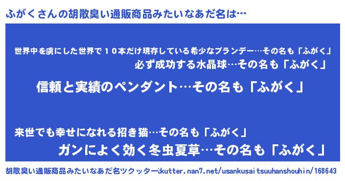 ふがくさんの胡散臭い通販商品みたいなあだ名をツクッター!