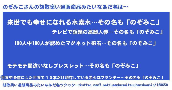 | ヘコむあだ名 | 『のぞみこ(笑)』『のぞふぇ~』 |