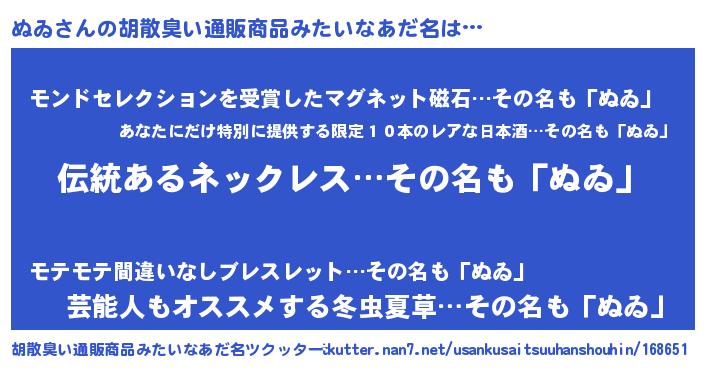 | ヒーロー風カッコイイあだ名 | 『幻影騎士ヌヰ』『天空の使者ぬゐ』 |