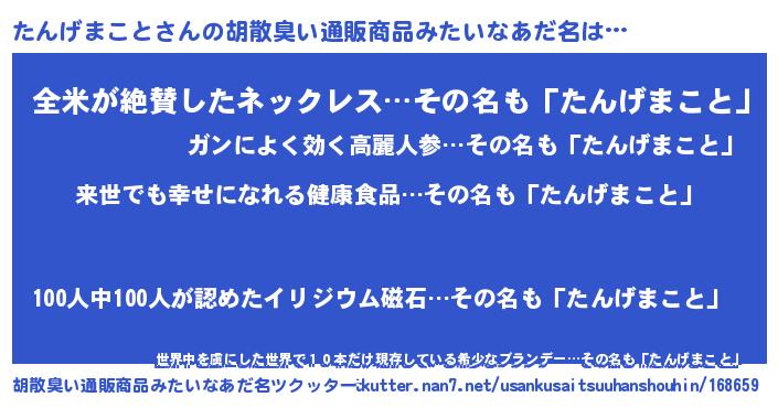 | 意味不明あだ名 | 『永久保存たんげまこと』 |