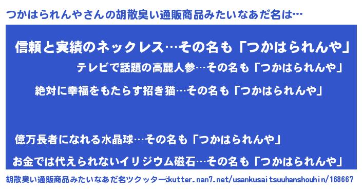 | 意味不明あだ名 | 『永久保存つかはられんや』 |