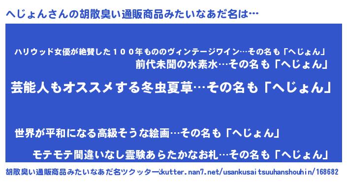 | ヘコむあだ名 | 『へじっふぃ~』『へじょん(小並感)』 |