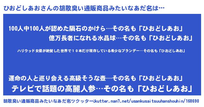 | ヘコむあだ名 | 『ひおもー』『牛乳』『ひお太郎』 |