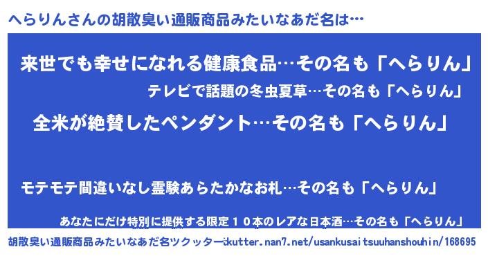 | ヘコむあだ名 | 『へらっちょ』『へらりん(笑)』 |