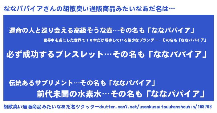 ななパパイアさんの胡散臭い通販商品みたいなあだ名をツクッター!