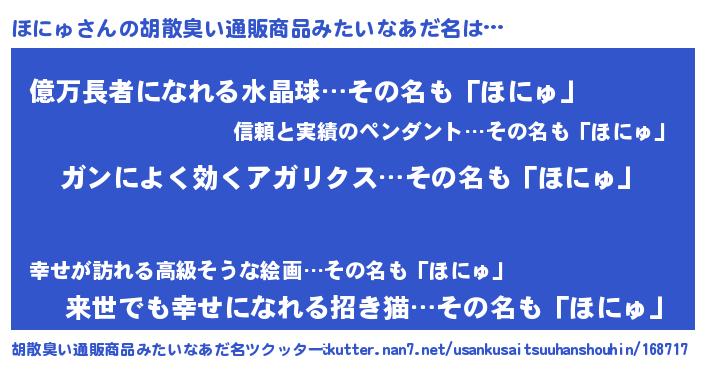 | 欧米人風あだ名 | 『ケンブリッジほにゅ』『マイケルほにゅ』 |