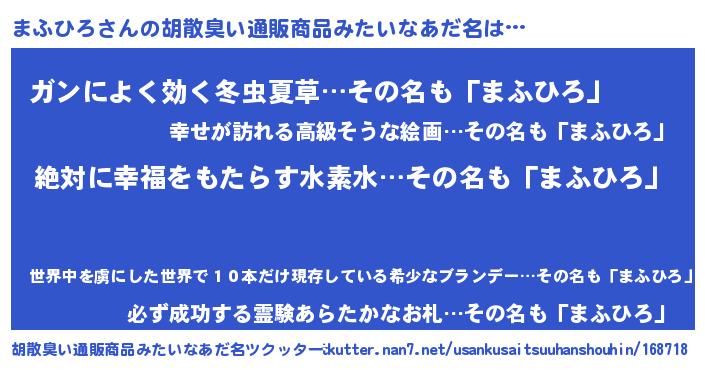 | 意味不明あだ名 | 『永久保存まふひろ』『自称まふひろ』 |