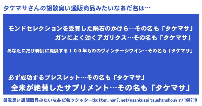 | 意味不明あだ名 | 『ヨモギ科タケマサ属』『自称タケマサ』 |