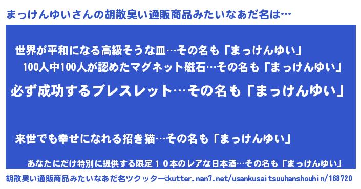| ヒーロー風カッコイイあだ名 | 『スーパーマッケンユイ』『仮面マッダー』 |