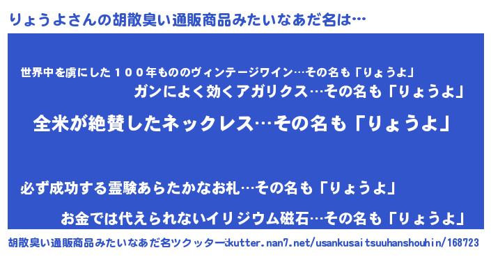 | 意味不明あだ名 | 『とにかく怪しいりょうよ』 |