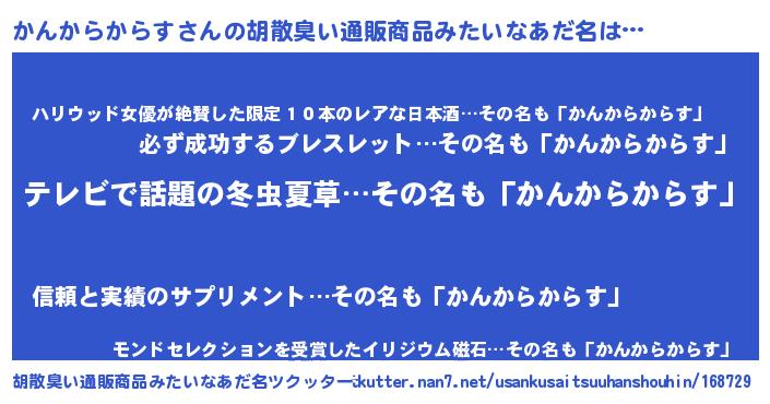 | 意味不明あだ名 | 『自称かんからからす』 |