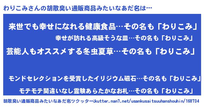 | 意味不明あだ名 | 『自称わりこみ』『永久保存わりこみ』 |