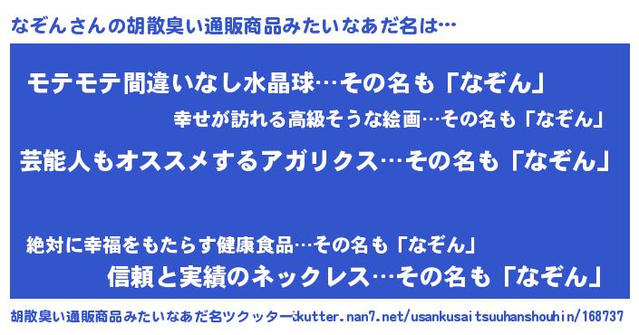 | 肩書あだ名 | 『なぞん総統』『なぞん社長』 |