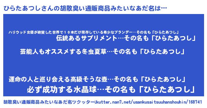 | 意味不明あだ名 | 『自称ひらたあつし』 |
