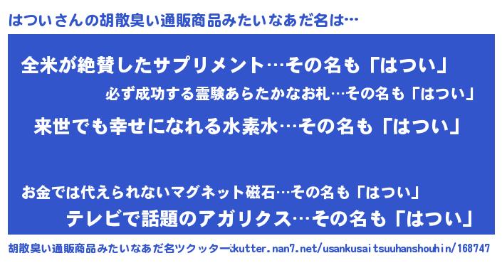 | ヘコむあだ名 | 『はつい(震え声)』『はつを』 |