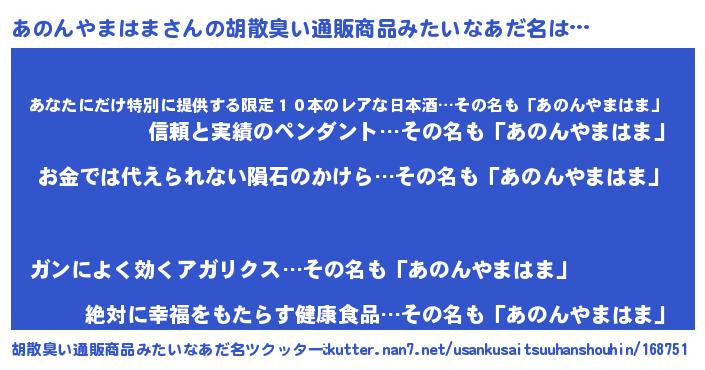 | ヘコむあだ名 | 『あのんやまはま(遠い目)』『あの太郎』 |