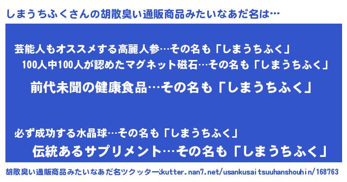 | 意味不明あだ名 | 『永久保存しまうちふく』 |