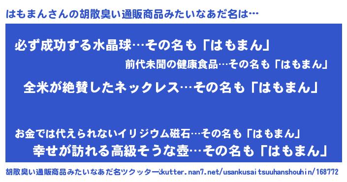 | 意味不明あだ名 | 『とにかく怪しいはもまん』 |