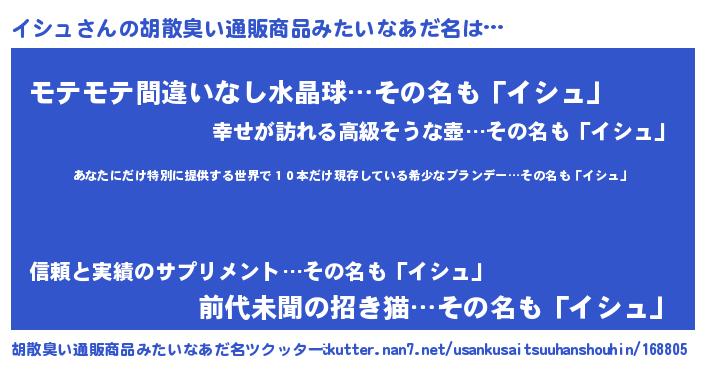 | ヘコむあだ名 | 『イシもー』『イシュ(笑)』 |