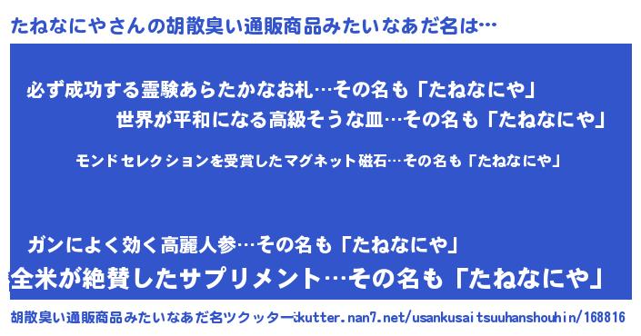 | 肩書あだ名 | 『たねなにや助教授』『たねなにや御曹司』 |