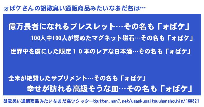 | 意味不明あだ名 | 『住所不定無職ォばケ(14歳)』 |