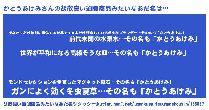 | 意味不明あだ名 | 『かとうあけみフォーエバー』 |