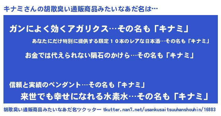 | ヘコむあだ名 | 『キナミ(遠い目)』『キナっぺ』 |