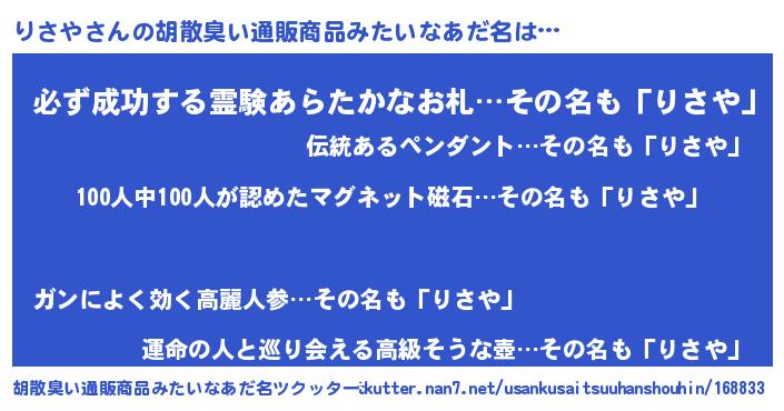 | ヘコむあだ名 | 『りさふぇ~』『牛乳』『りさを』 |