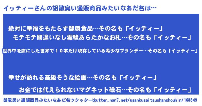 | 意味不明あだ名 | 『住所不定無職イッティー(91歳)』 |