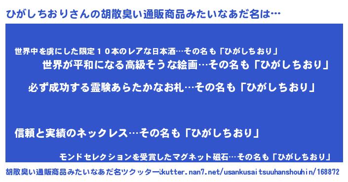 | 伝説のあだ名 | 『伝説のスナイパーひがしちおり』 |